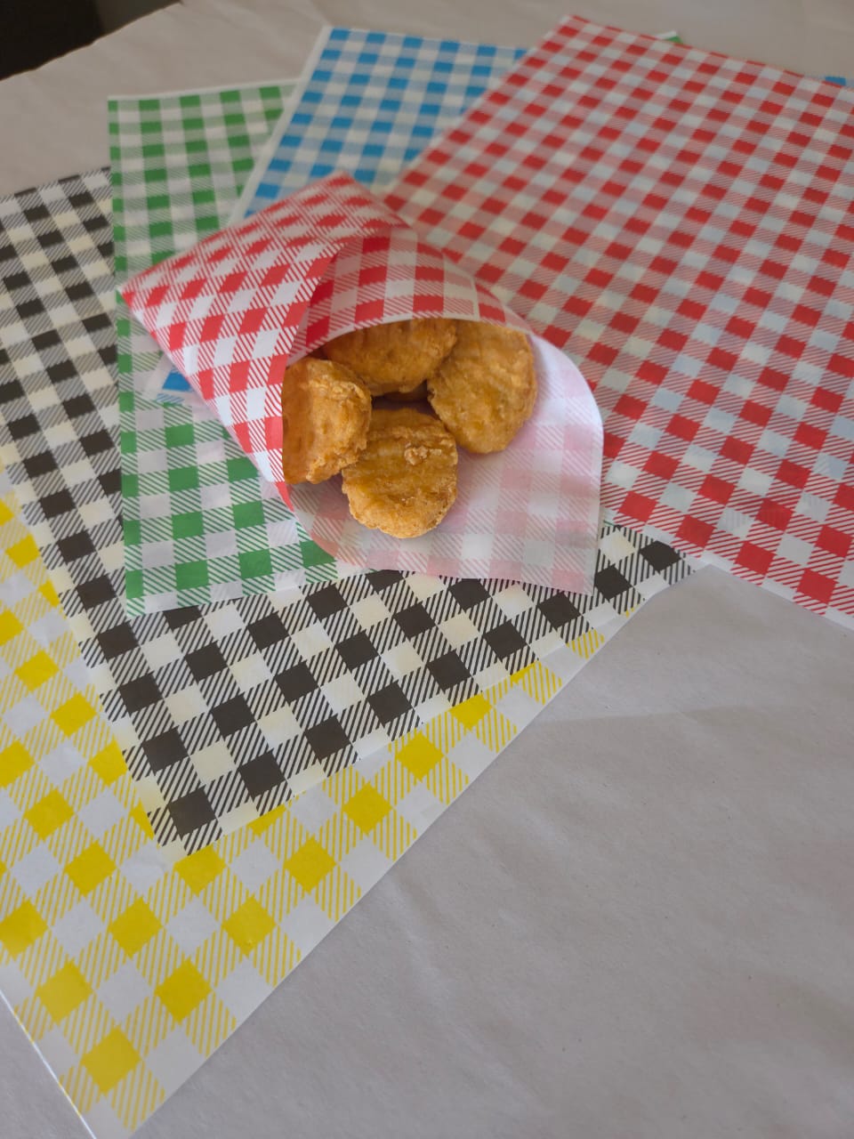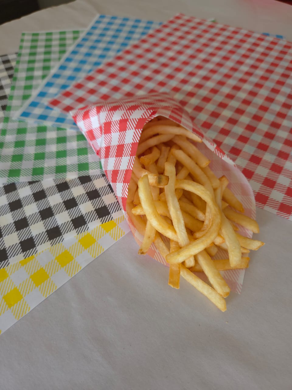 - Papel antigrasa es altamente eficaz para el empaque de alimentos, como hamburguesas, pizzas, tacos, frituras, pasteles, etc. especialmente aquellos productos que contienen grasas o salsas; ya que impide que las grasas o liquidos traspasen el papel, garantizando que los alimentos se mantengan frescos y en perfecto estado.